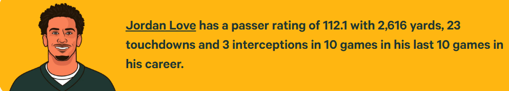 - *Listed below are Jordan Love’s cumulative stats over the last 10 games of the 2023 season compared to the previous 10 games of Aaron Rodgers’s last two MVP seasons.