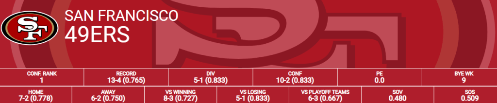 1. San Francisco 49ers (13.0 Wins)