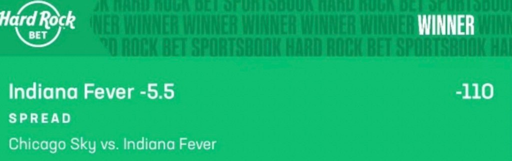 W 8/30: Indiana Fever -5.5 (-110) vs Chicago Sky 1 unit + 0.9 units