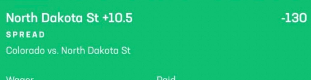 W 8/29: NDSU +10.5 (-130) vs Colorado 2 units +1.9 units (profit boost used)